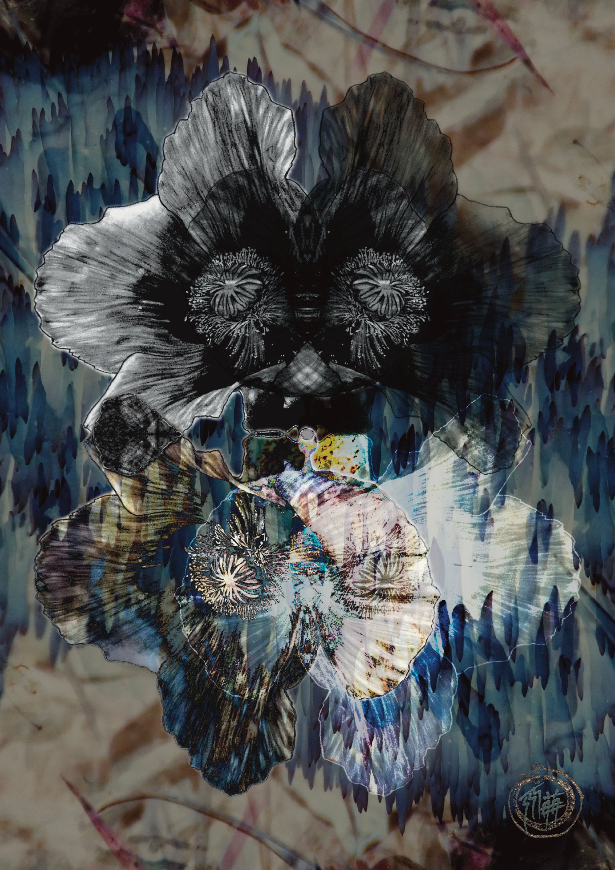 In Nocturne, the poppy emerges as a vessel of memory and oblivion — a nocturnal bloom suspended between dream and dissolution. Its mirrored petals fold into deep blues and silvers, echoing the quiet pulse of night. Beneath the surface, fragility and endurance entwine, tracing the thin boundary where rest becomes release, and the beauty of surrender takes luminous form.