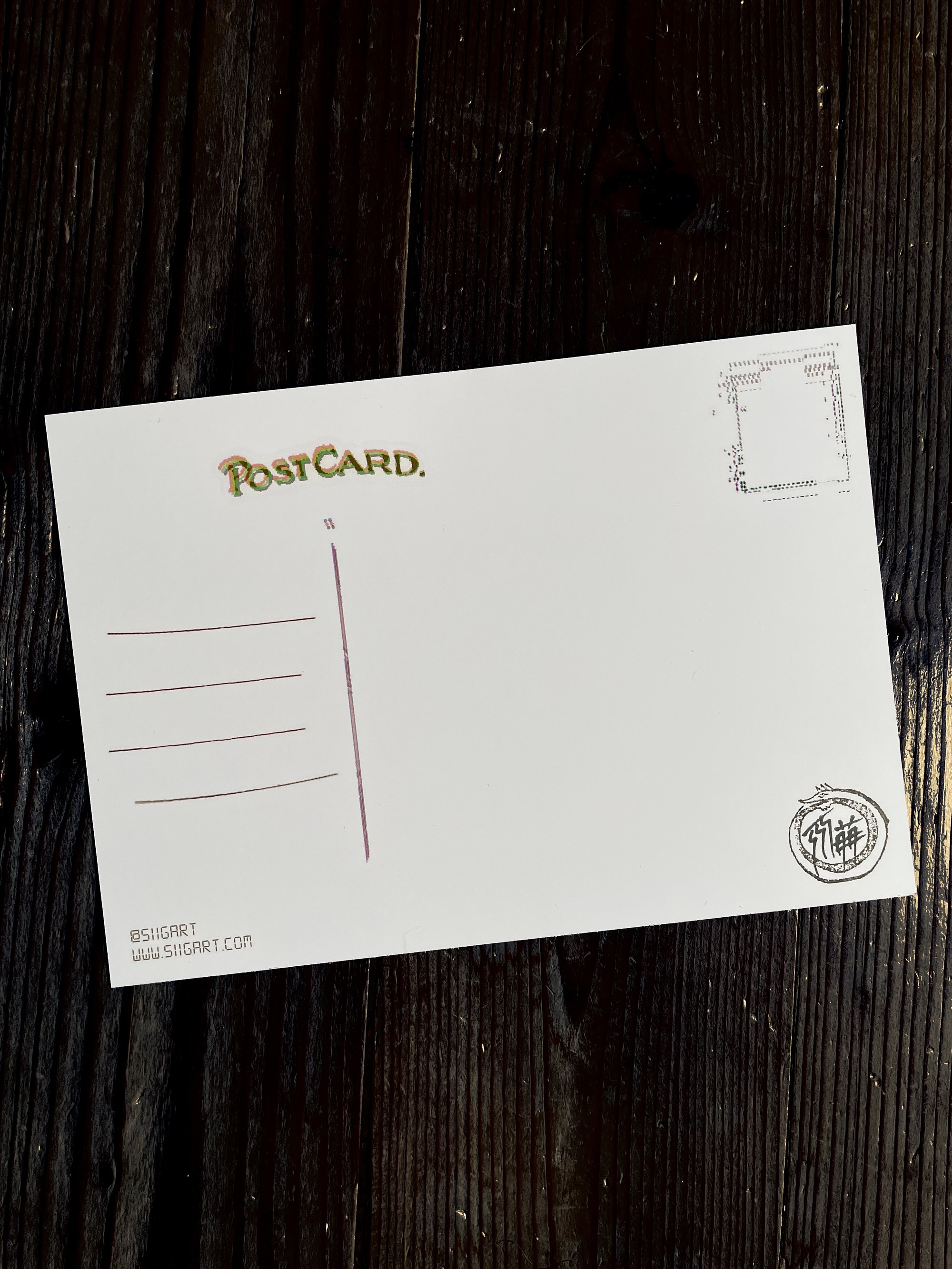 Printed on heavyweight 400gsm glossy cardstock, this A5 artcard features a signed original artwork combining photography with digitally manipulated texture.